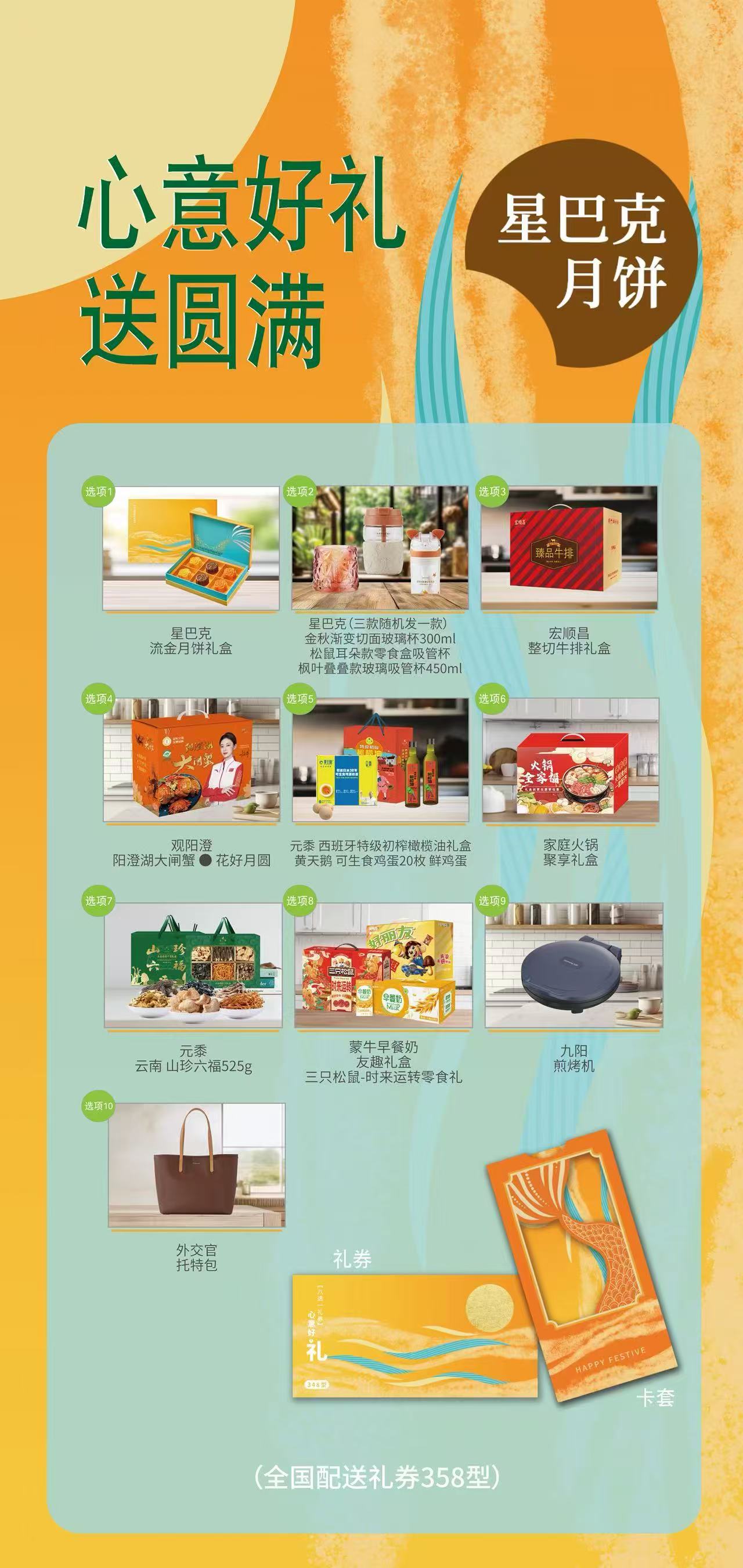 星巴克月饼礼券,2025中秋企业员工福利提货券