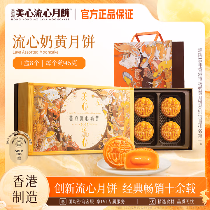 简介: | 2025中秋香港美心月饼倾情推出企业专属「流心奶黄8选1礼券」,以匠心美味致敬团圆时刻。礼券涵盖美心招牌流心奶黄系列8款人气口味,从经典原味到创新低糖款,从浓郁咖啡流心到清新抹茶内馅,每一口皆是米其林星级烘焙工艺的极致呈现。 |
